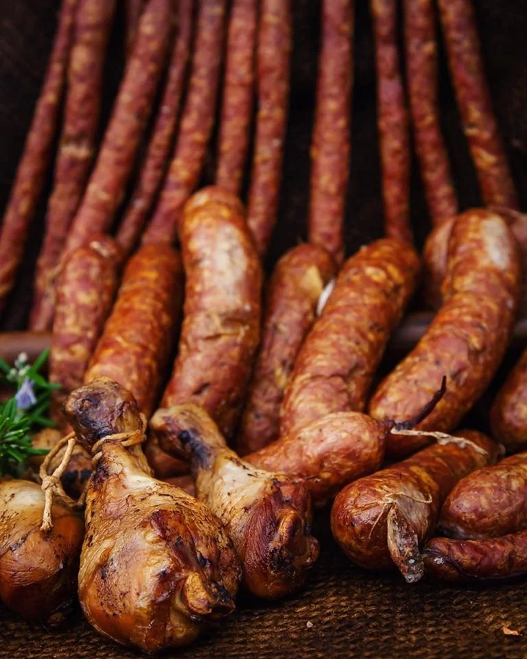 Grilled Silesian sausage with traditional Polish and Central European sides.