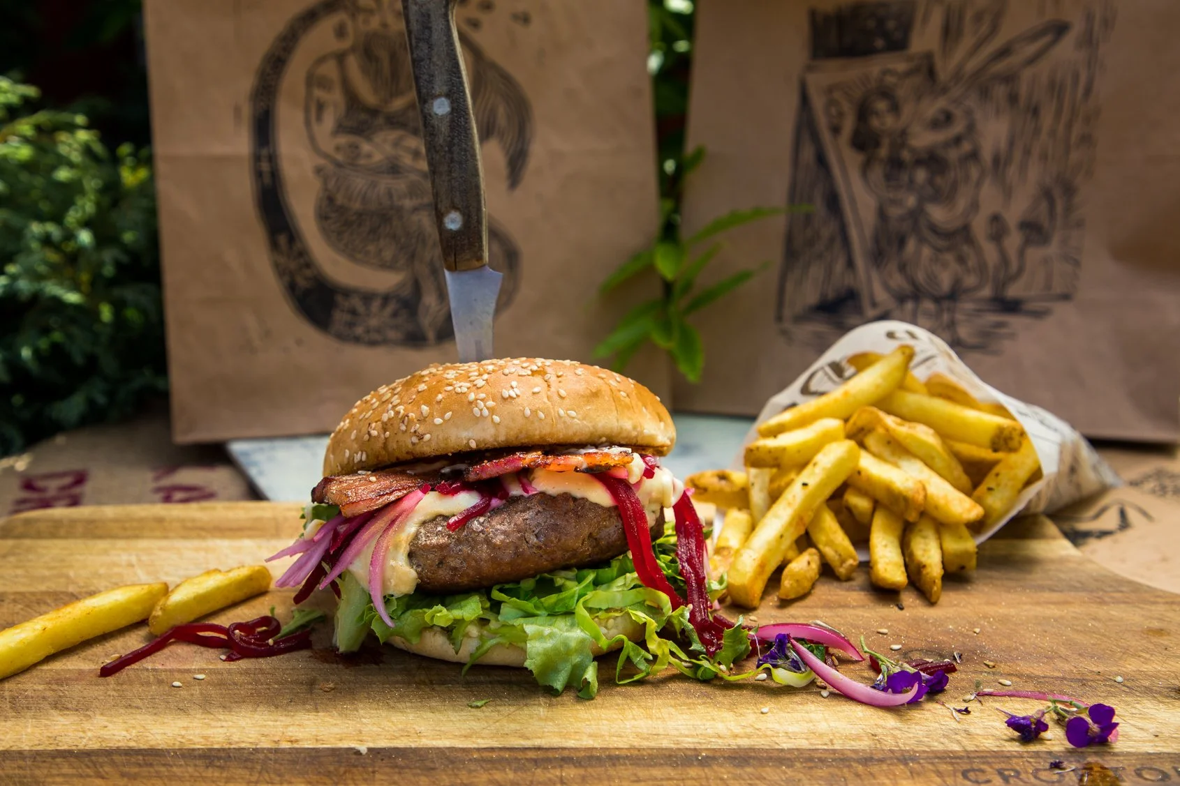 Our most distinctive concept: premium wild meat patties made from wild boar and venison, served in toasted gourmet buns.